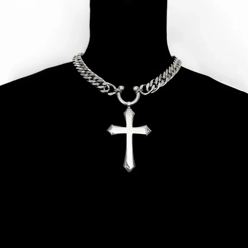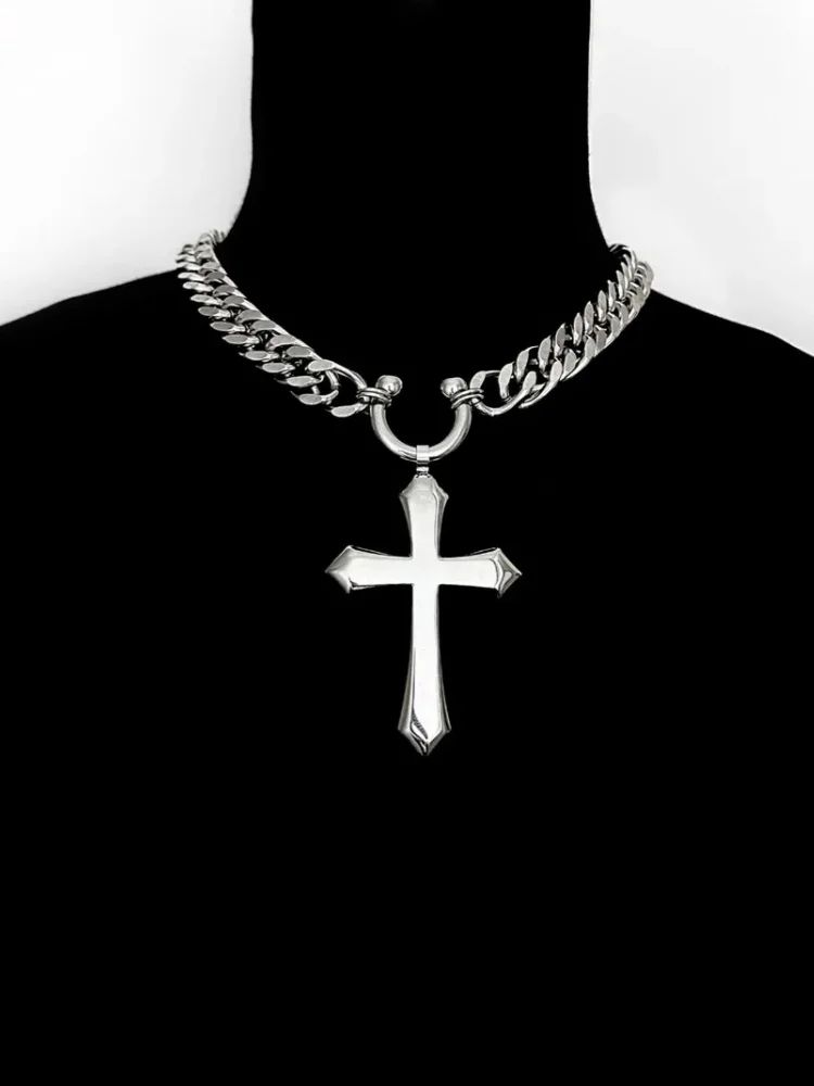 Model Name: 1 Piece Personalized Fashion Cross Y2K Punk Style Stainless Steel Silver Color Pendant Necklace for Men and Women