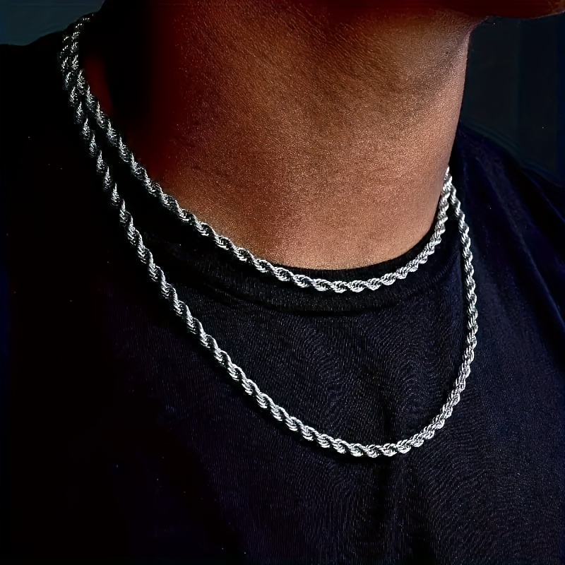 1pc Stainless Steel Twisted Chain Hip Hop Pendant Necklace for Men and Women