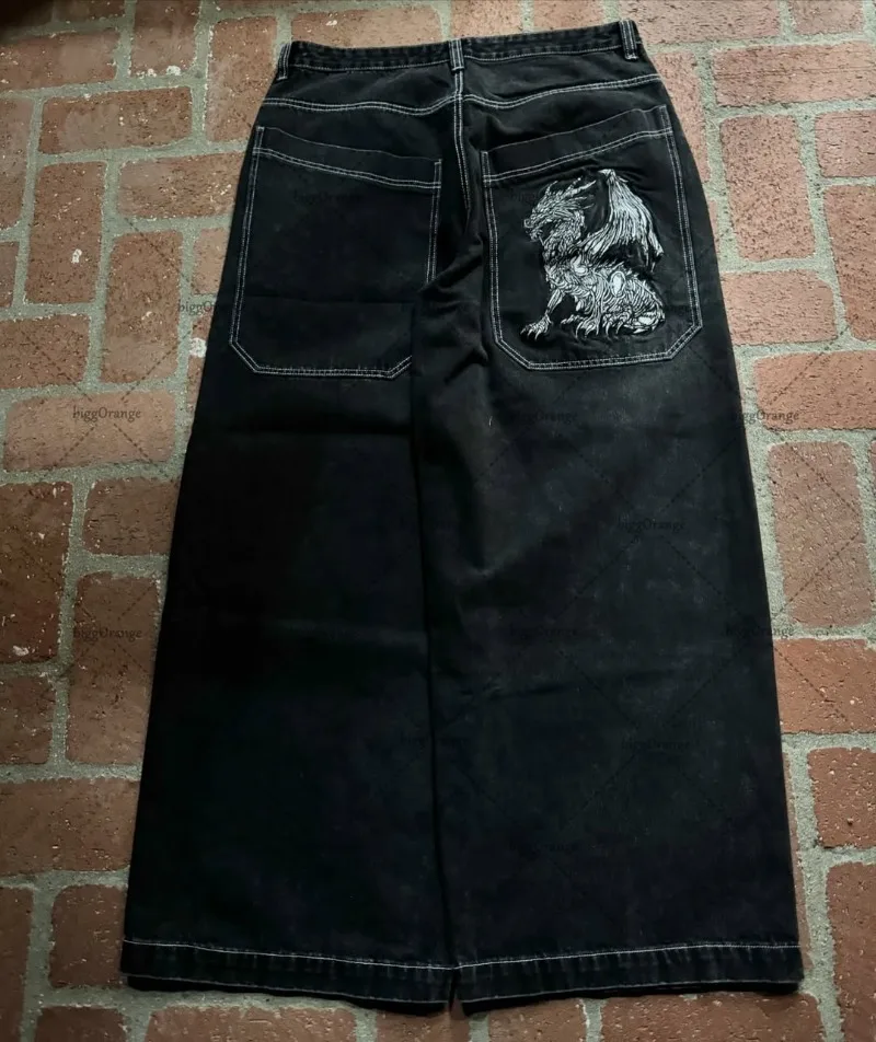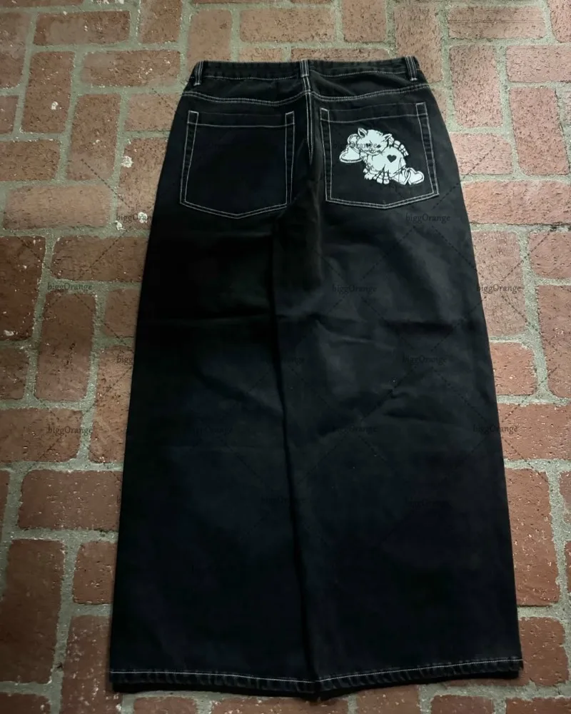 Gothic Harajuku Retro Streetwear Trousers Vintage High Street Baggy Y2K Jeans Women Hip-hop Punk High Waist Wide-leg Pants Men