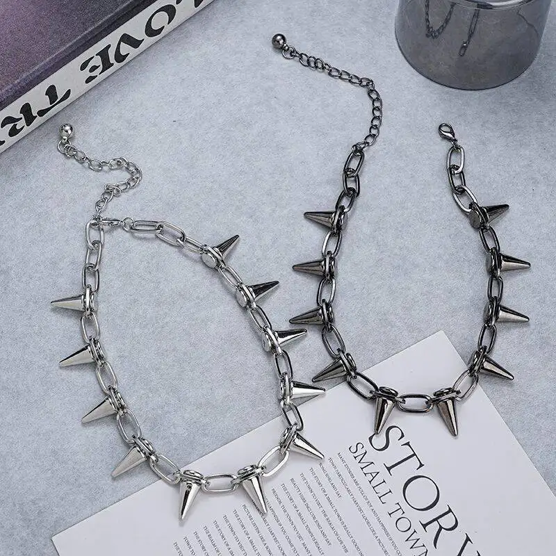 Hip Hop Black Alloy Rivet Men Necklace Punk Metal Choker Neogoth Fashion Jewelry Trendy Accessories