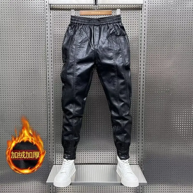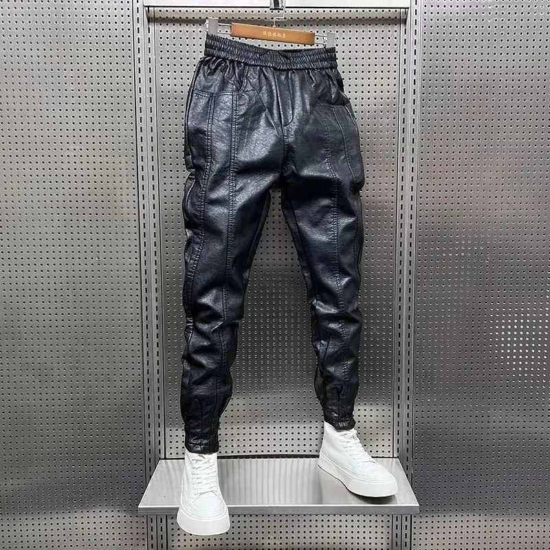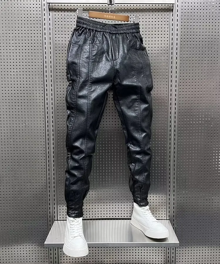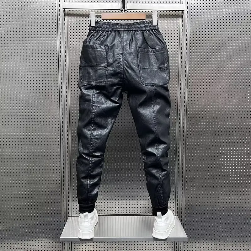 Men Leather Pants: Elastic Waist Jogger Pants
