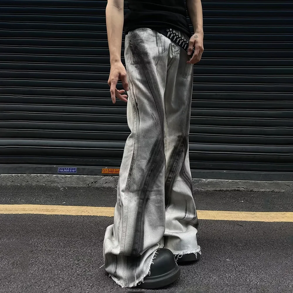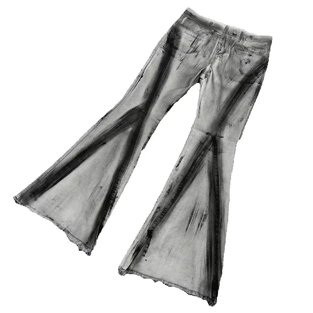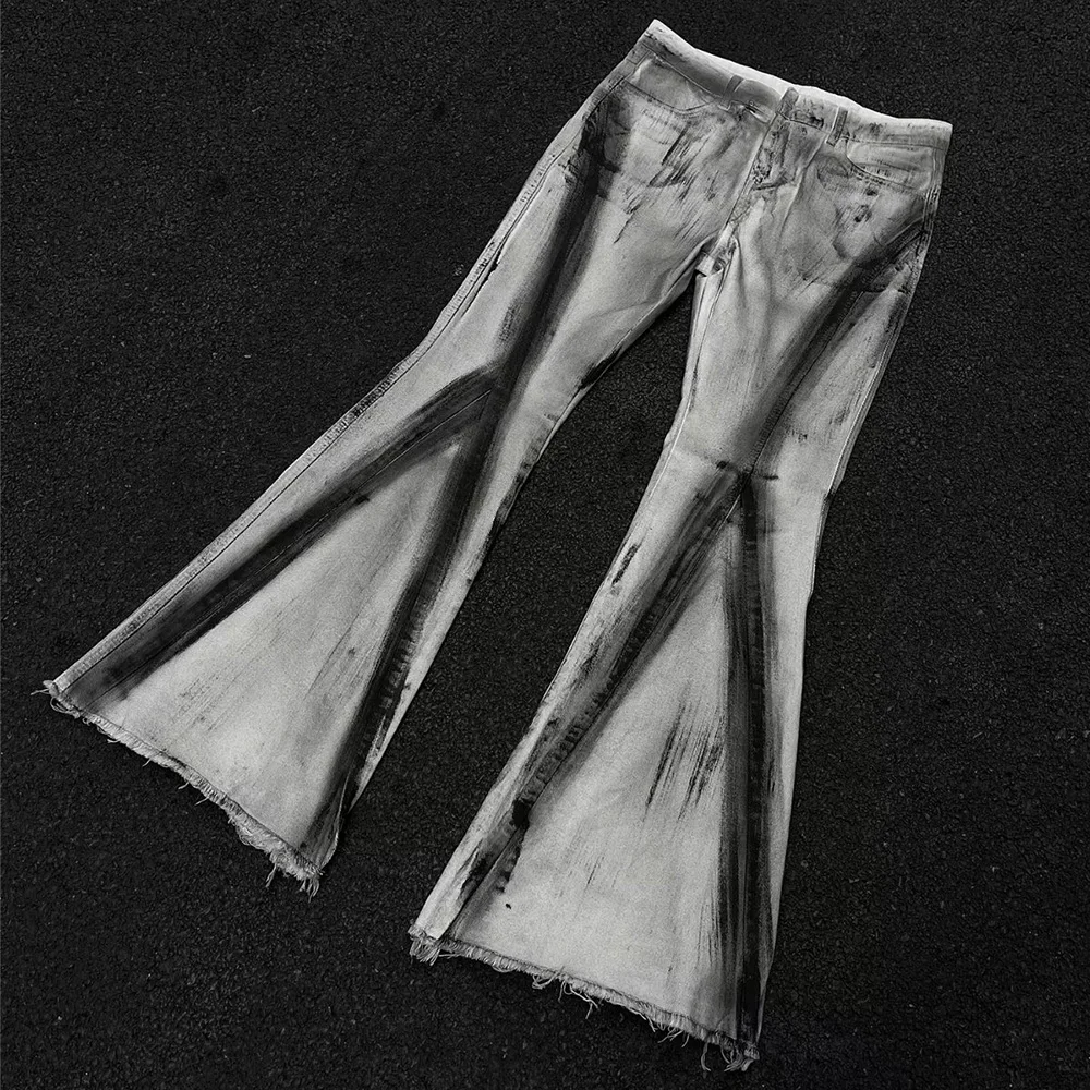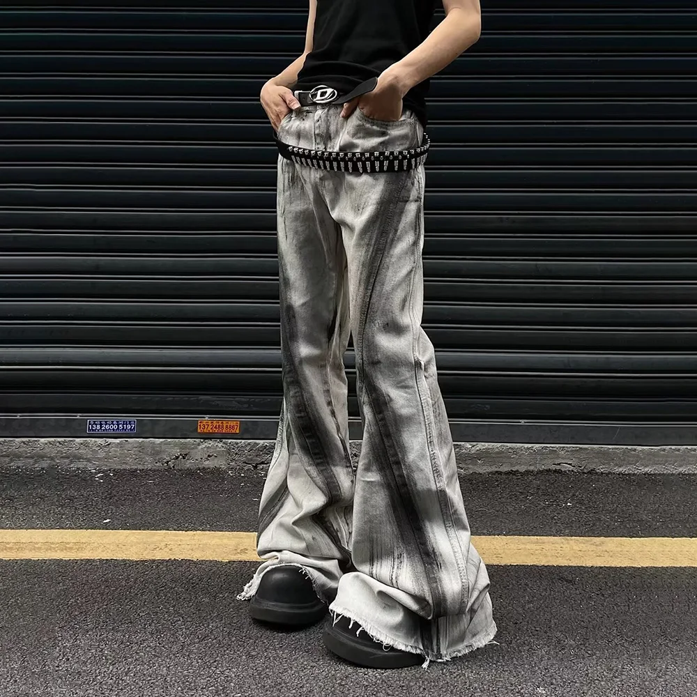 Hip Hop Men's Y2k Harajuku Contrast Color Gradient Flared Denim Trousers Retro Fashion Casual Trend High Street Men's Bottoms