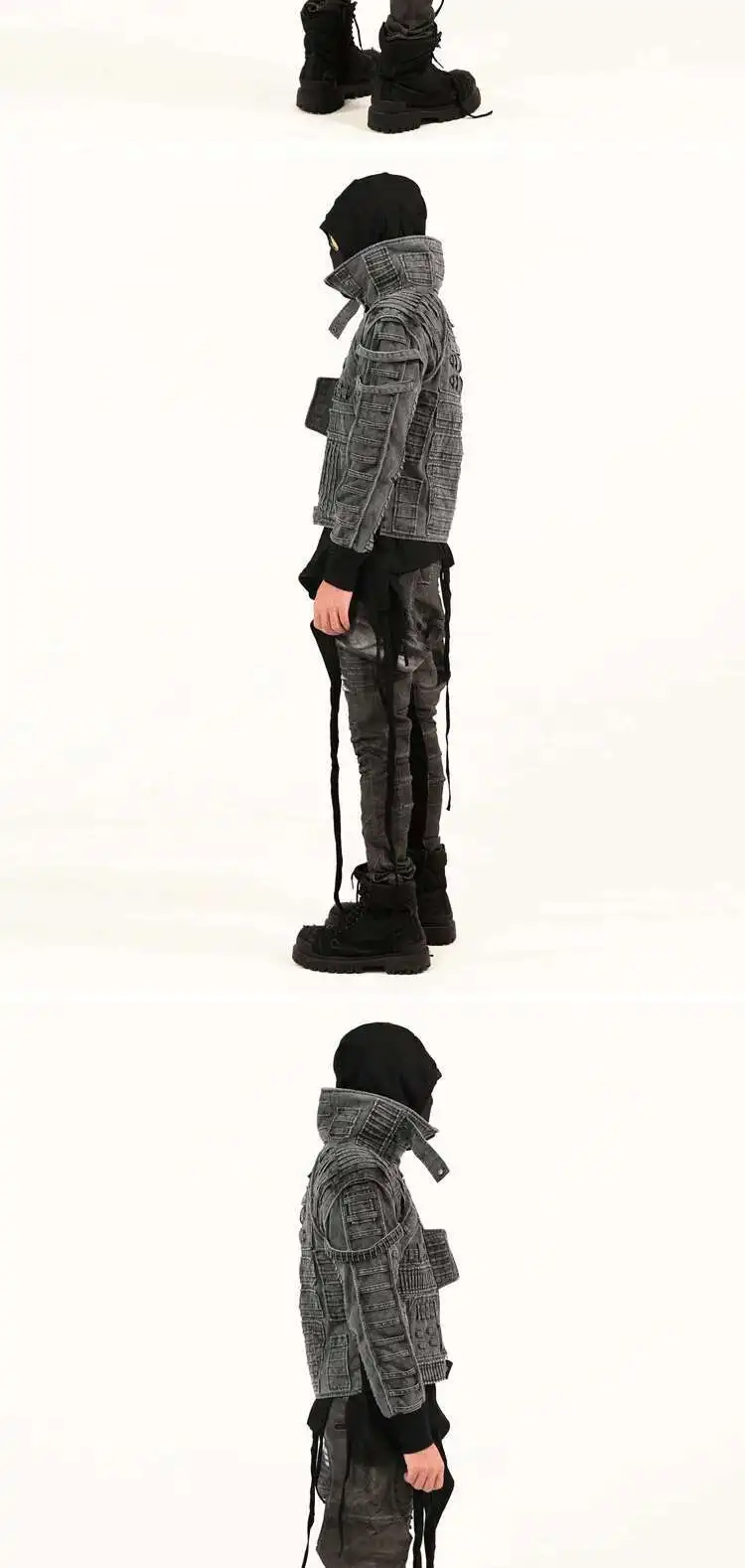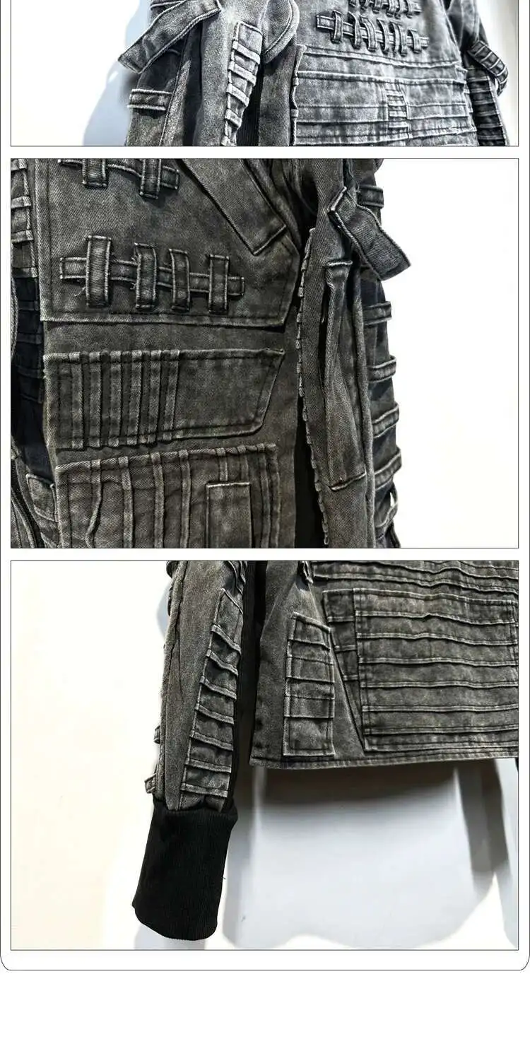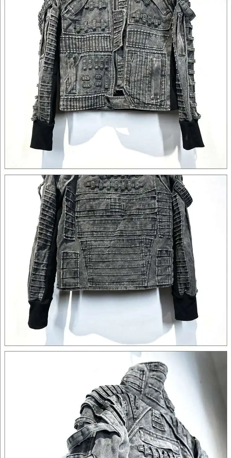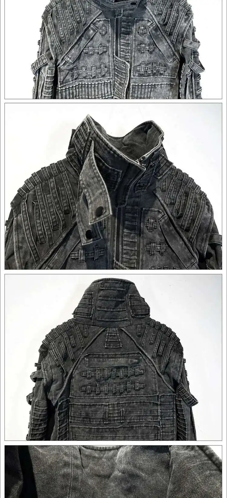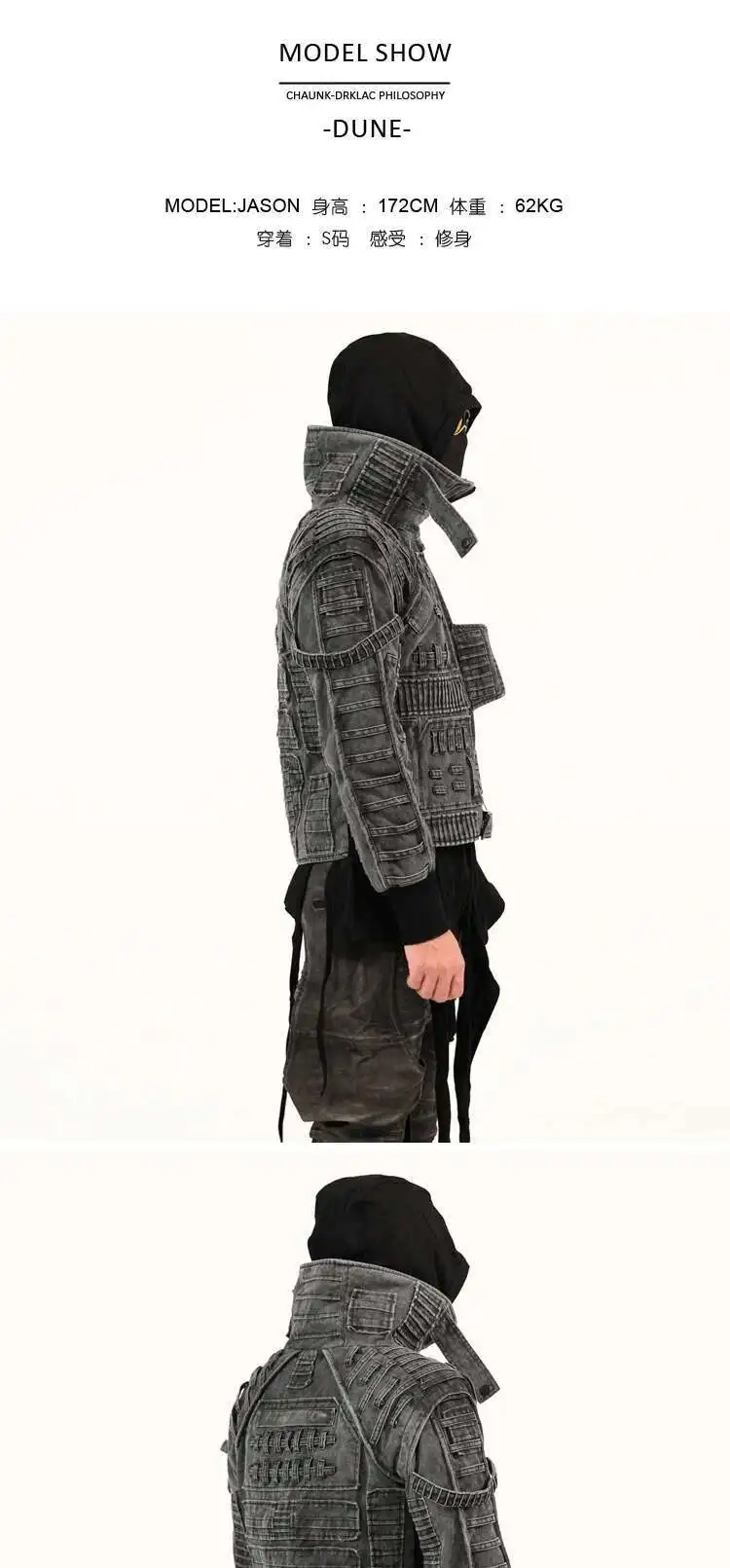 HKSH Spring Autumn Men Punk Waste Land Pleated Asymmetric Loop Vintage Washed Cotton Jacket Techwear Dark Motorcycle Coat HK4372