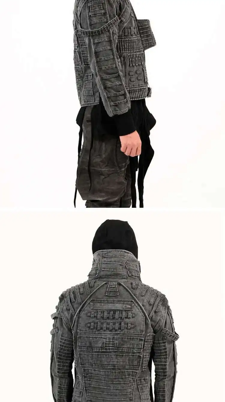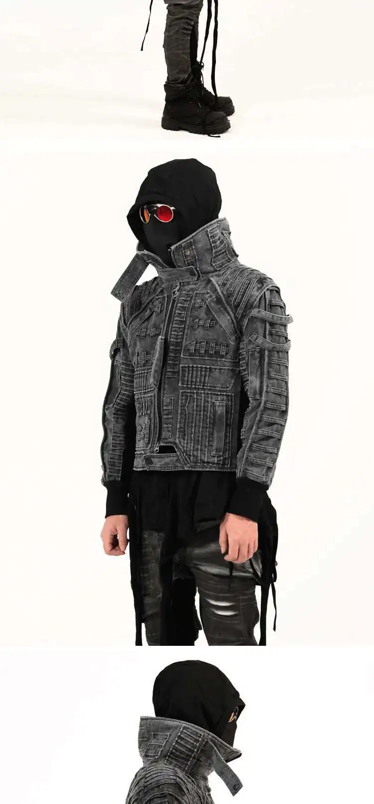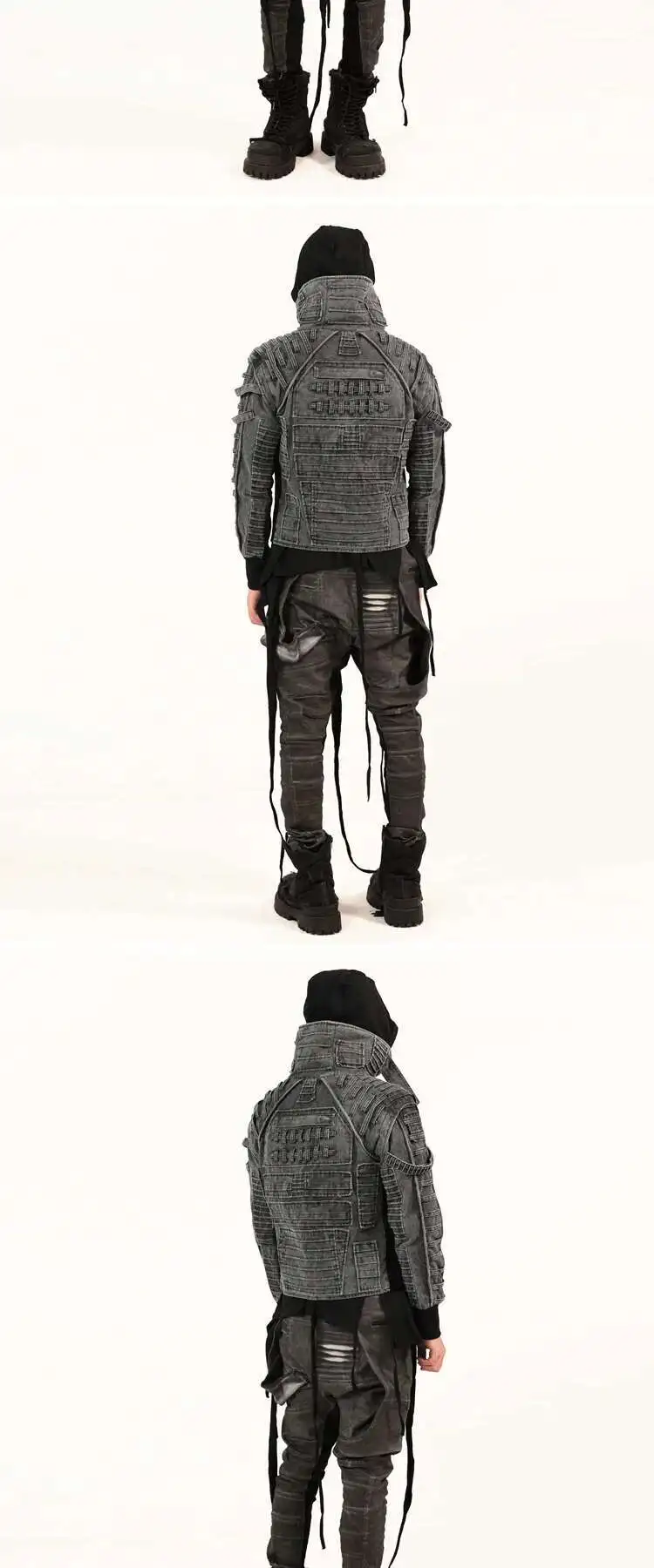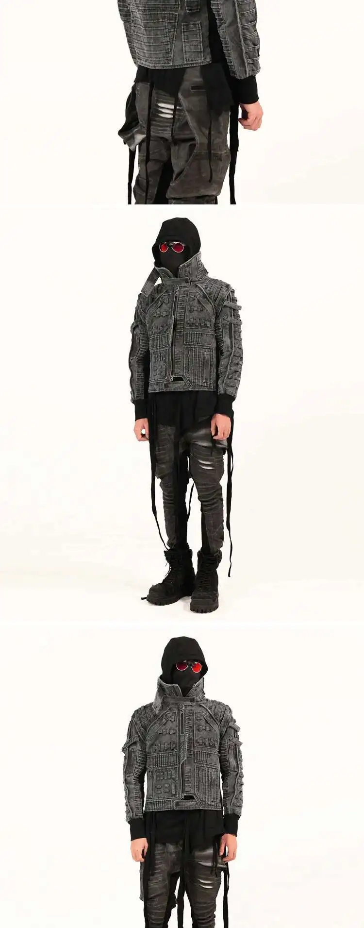 HKSH Spring Autumn Men Punk Waste Land Pleated Asymmetric Loop Vintage Washed Cotton Jacket Techwear Dark Motorcycle Coat HK4372
