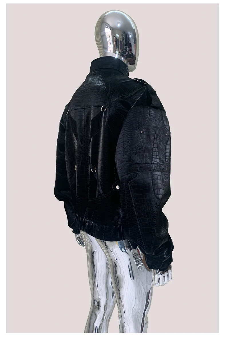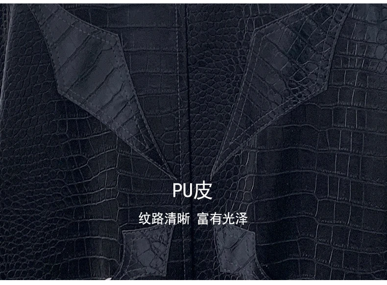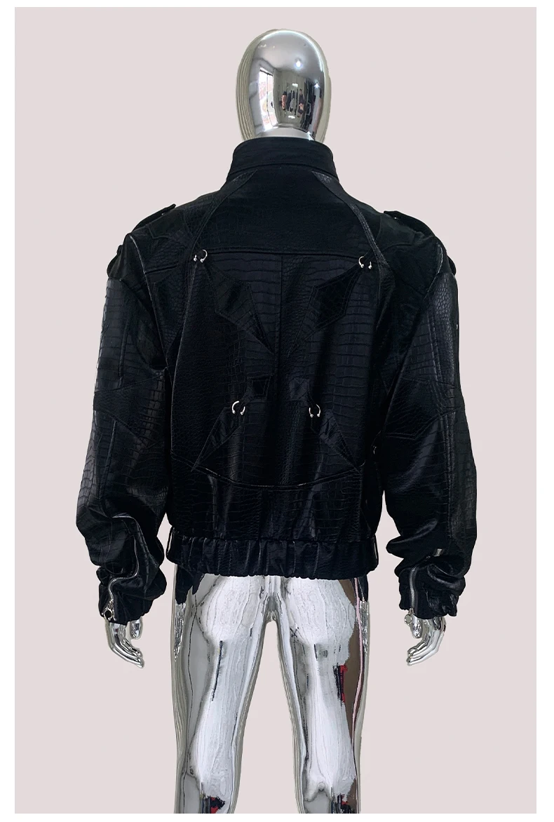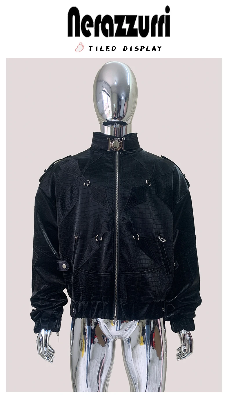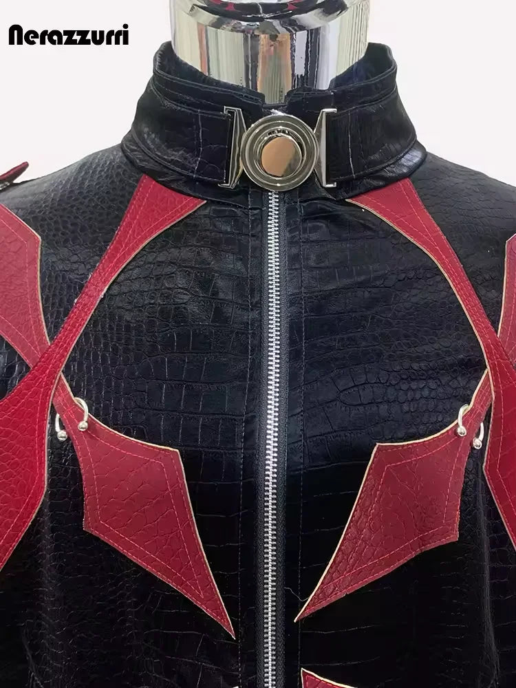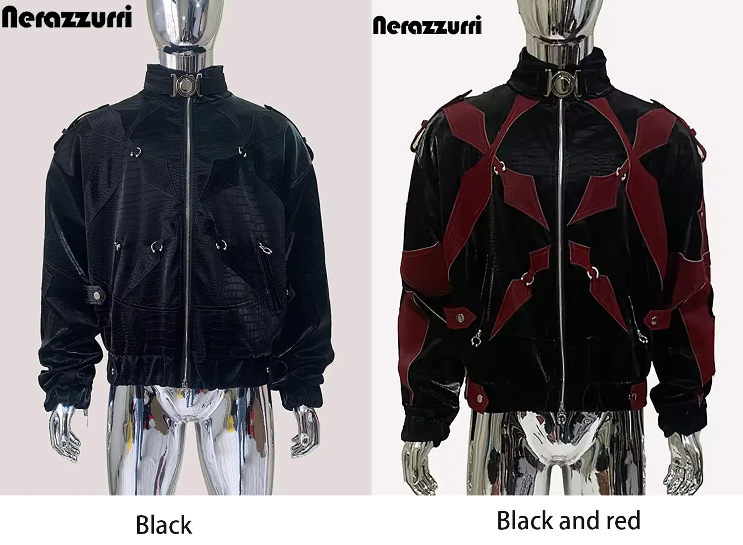 Mauroicardi Autumn Short Color Block Crocodile Print Faux Leather Jacket Men Stand Collar Luxury Designer Punk Style Emo Clothes