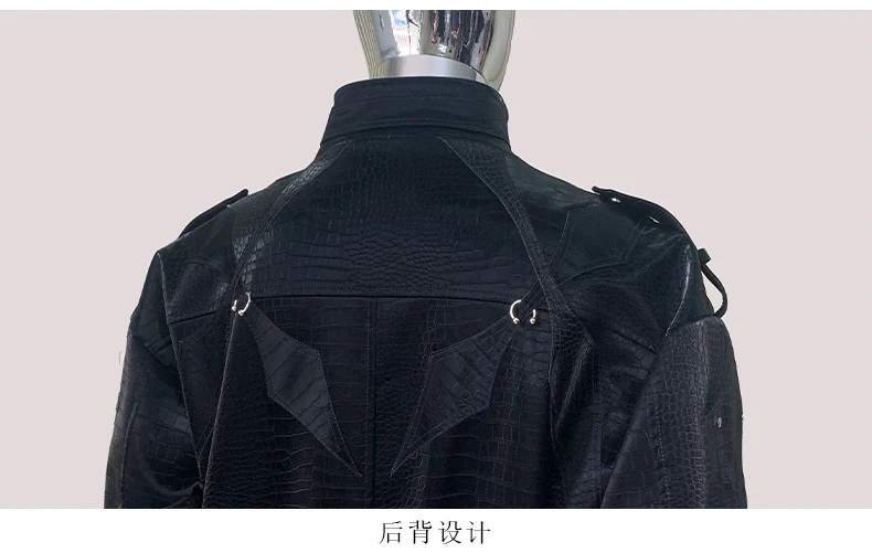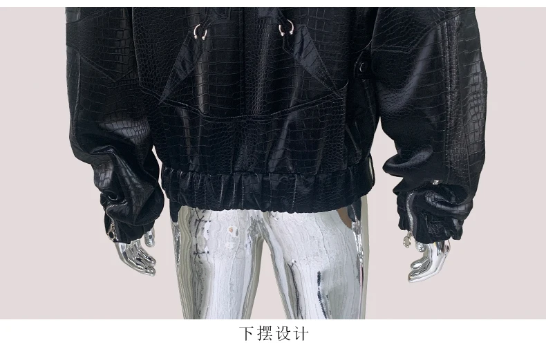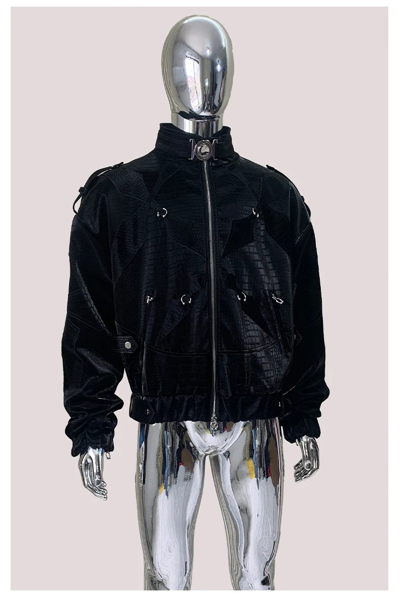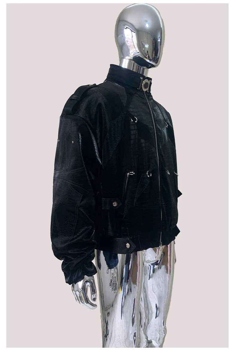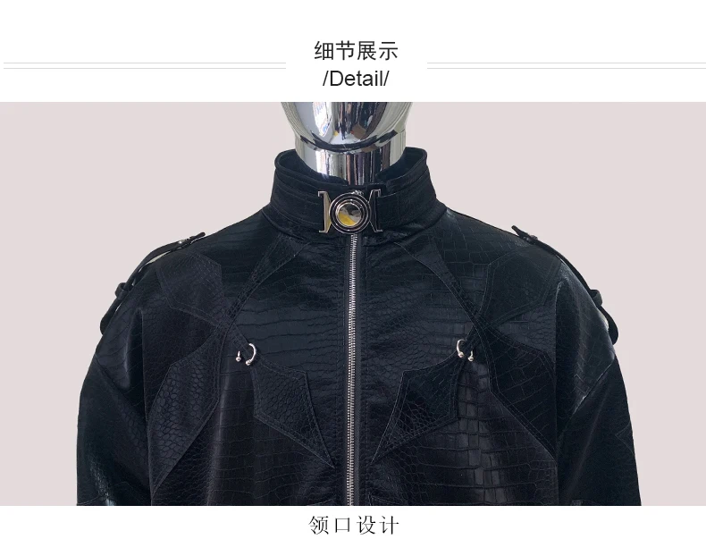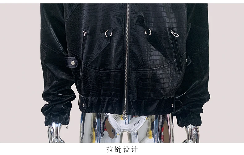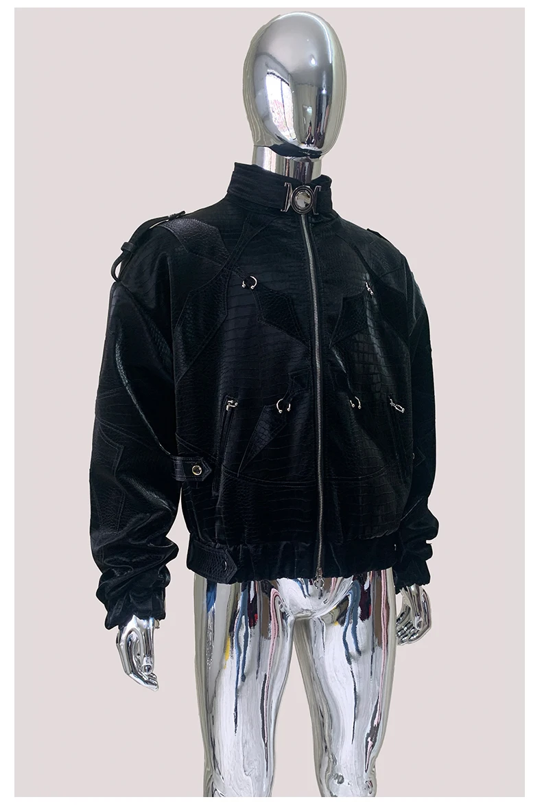 Mauroicardi Autumn Short Color Block Crocodile Print Faux Leather Jacket Men Stand Collar Luxury Designer Punk Style Emo Clothes