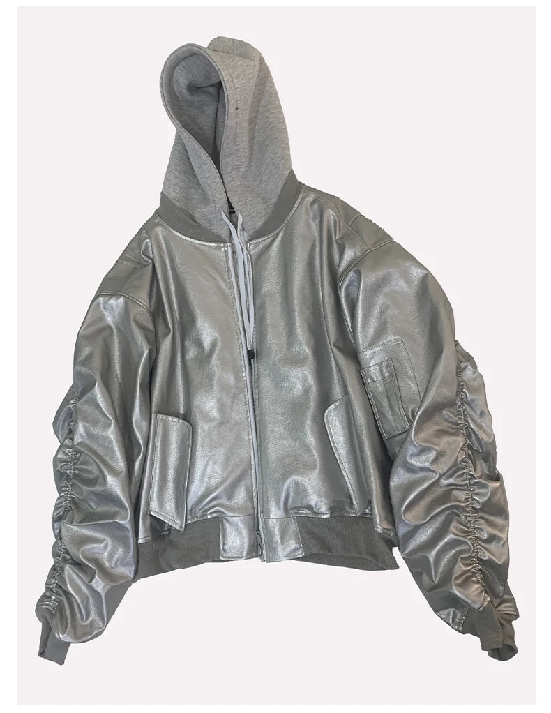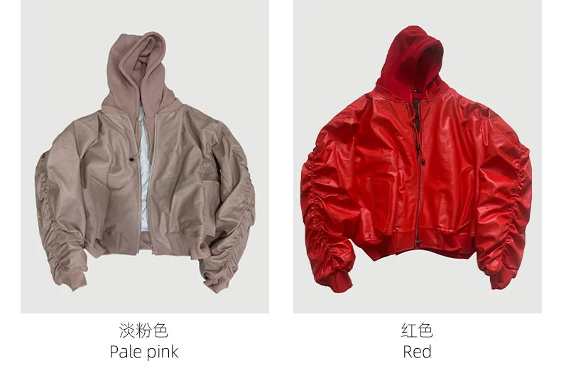 Mauroicardi Autumn Winter Oversized Cool Black Thickened Warm Pu Leather Bomber Jacket Men Hood Luxury Designer Fake 2 Clothes