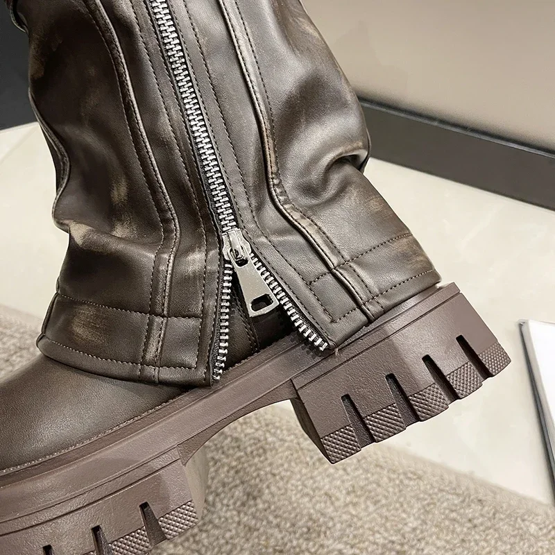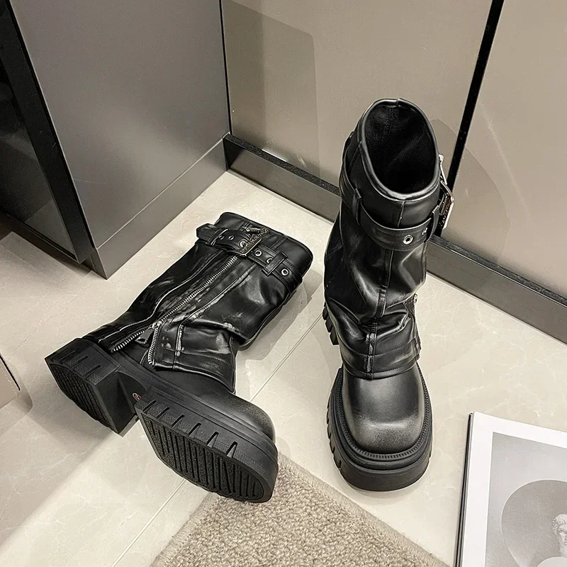 Shoes for Women Belt Buckle Women's Boot Fashion Side Zipp Modern Boots Women High Quality Round Toe Mid-Calf Zapatos