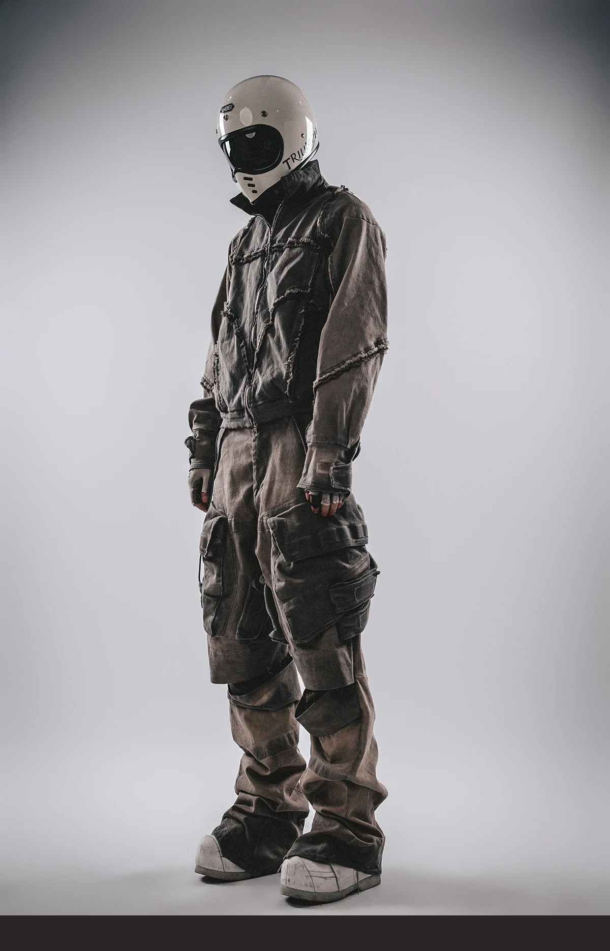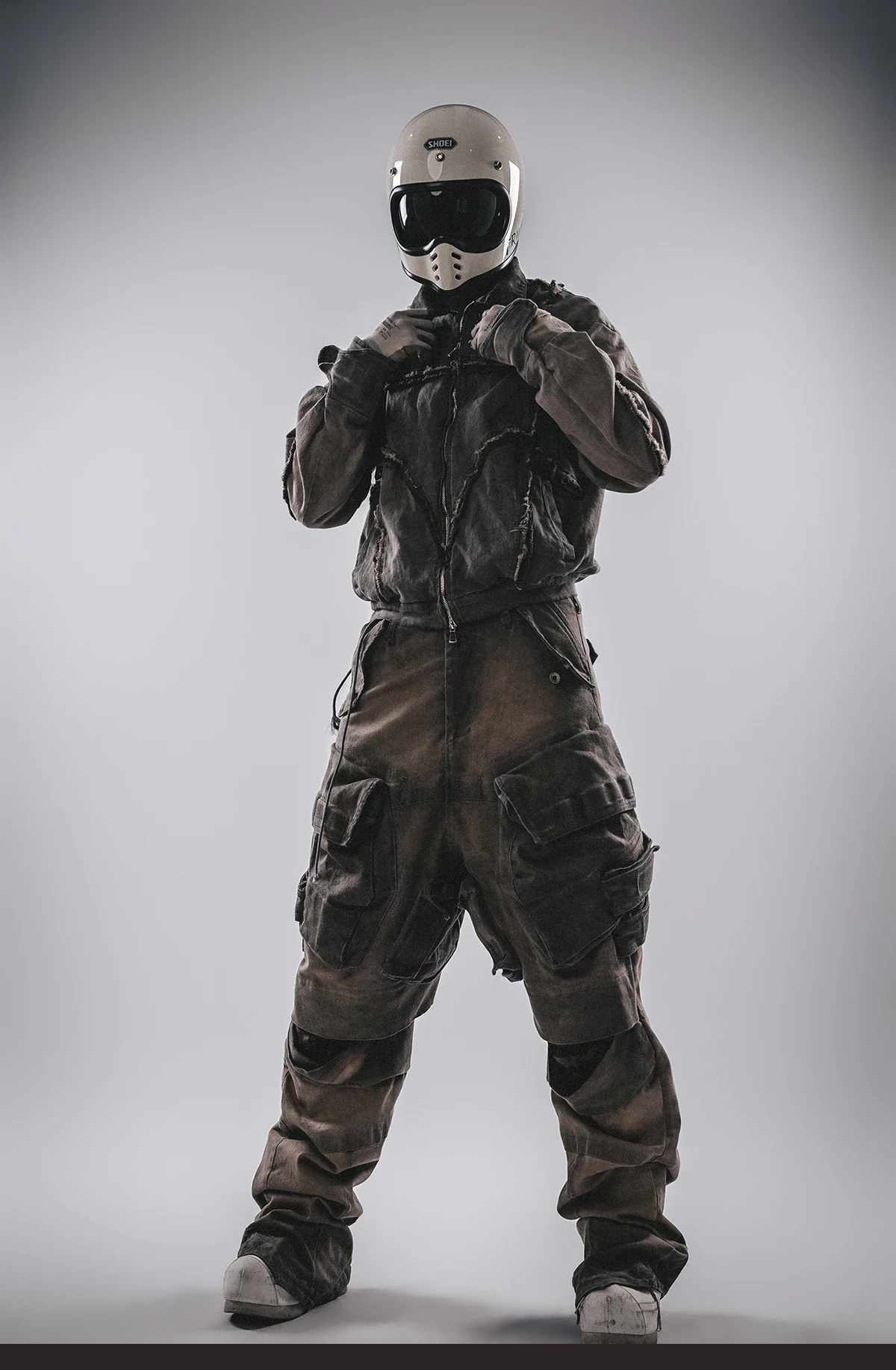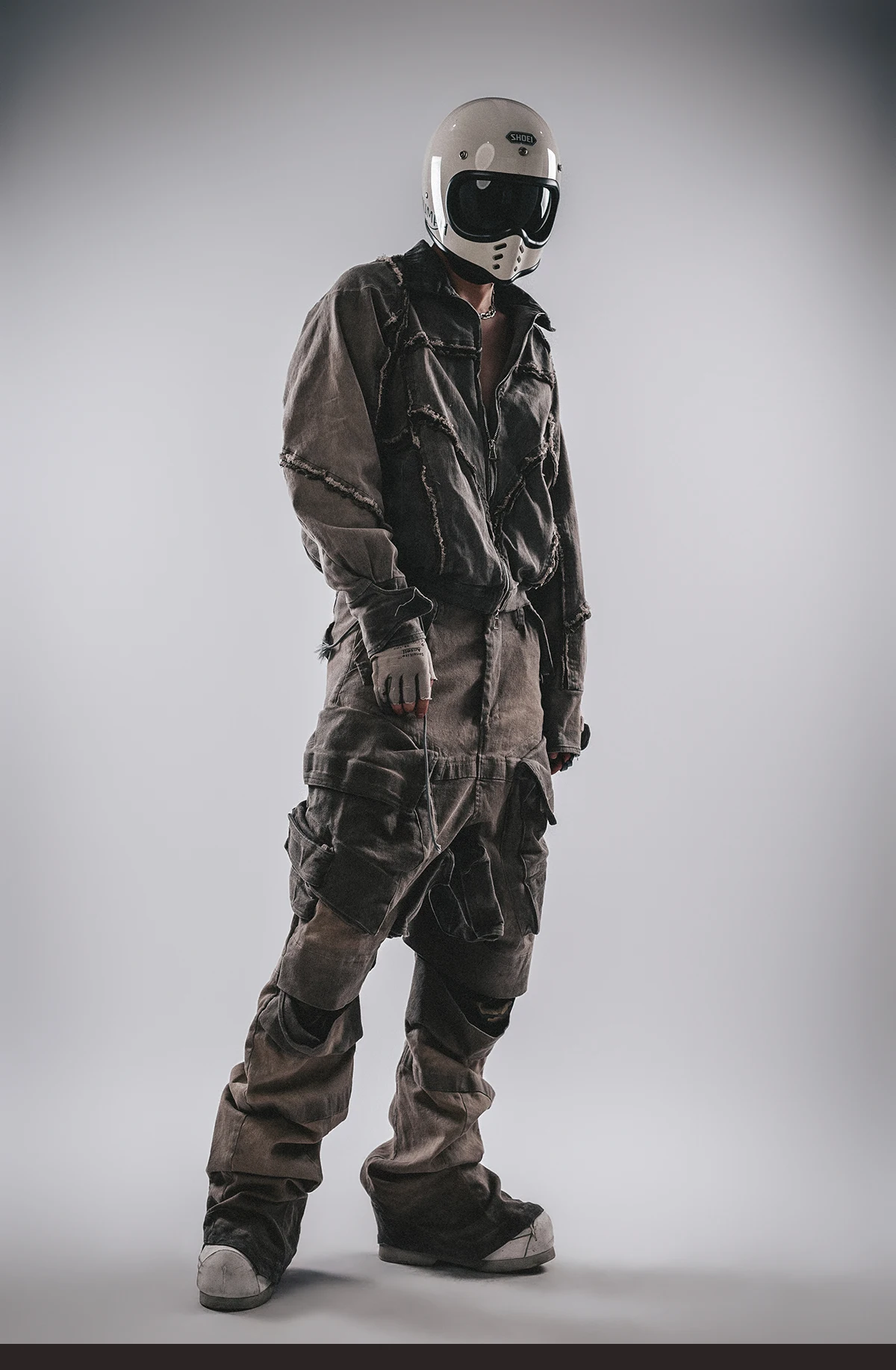 Waste Soil Style Washed Frayed Rough Edge Short Jacket Men Profile Distressed Flip Collar Coat
