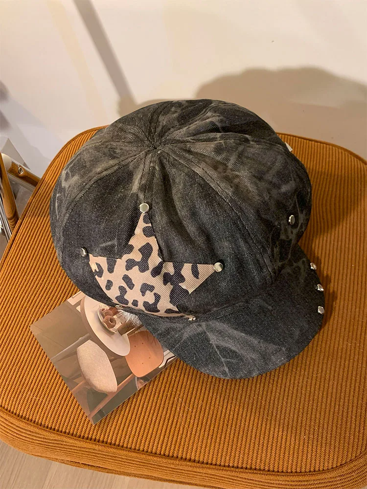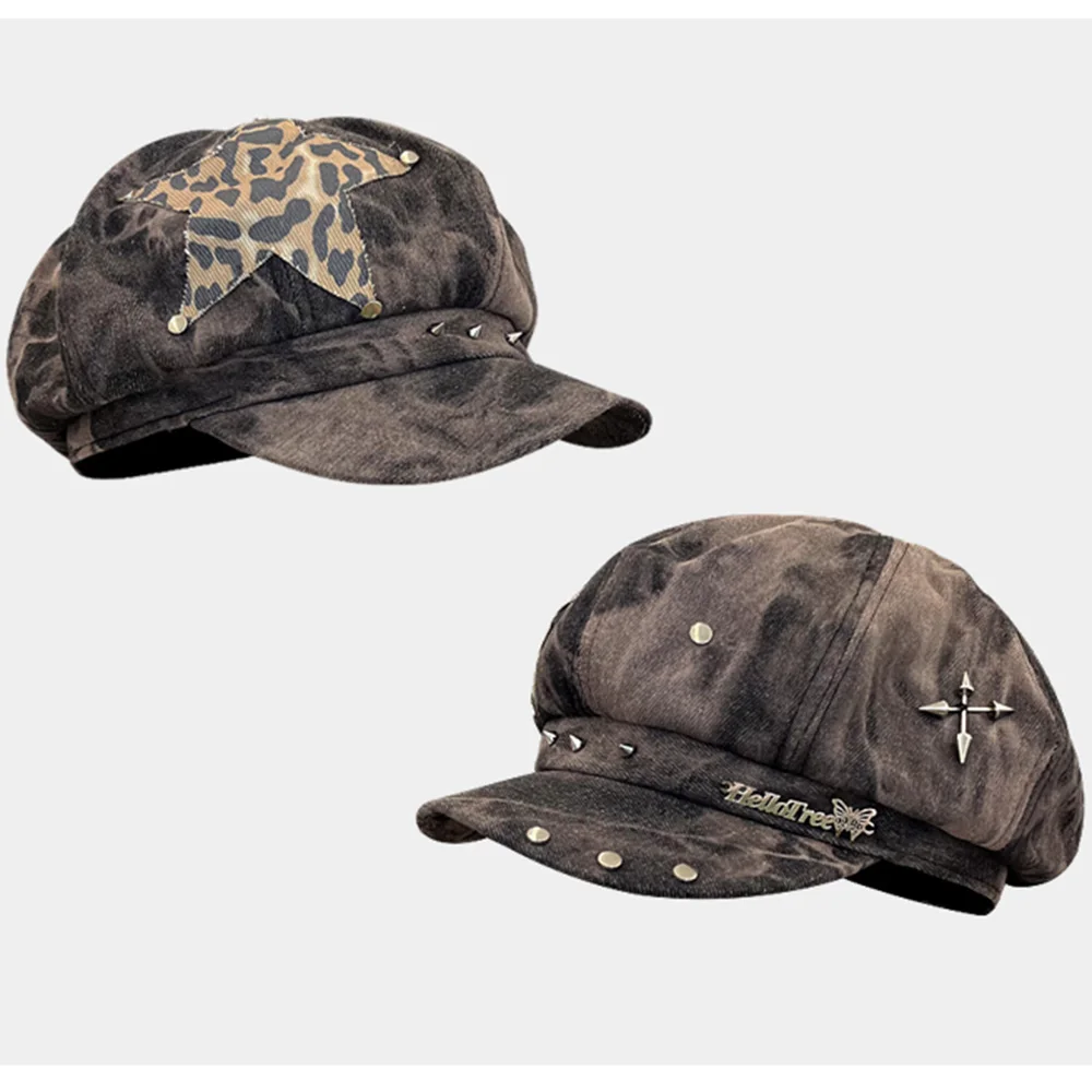 Y2K Personalized Star Sticker Rivet Design Berets Caps for Women Spring and Autumn Fashion Versatile Retro Tie-dye Newsboy Hats